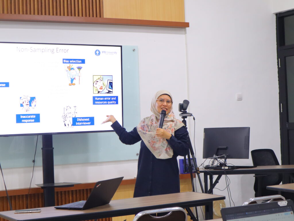 Sesi pertama mengangkat topik “Experimental Design and Sampling” bersama Dr. Utami Dyah Syafitri. Pada sesi ini, peserta memperoleh pemahaman mengenai perancangan percobaan yang efektif dan teknik pengambilan sampel yang tepat untuk mendukung penelitian. Melalui pembelajaran ini, mahasiswa diharapkan mampu merancang penelitian yang terukur dan menghasilkan data yang valid.