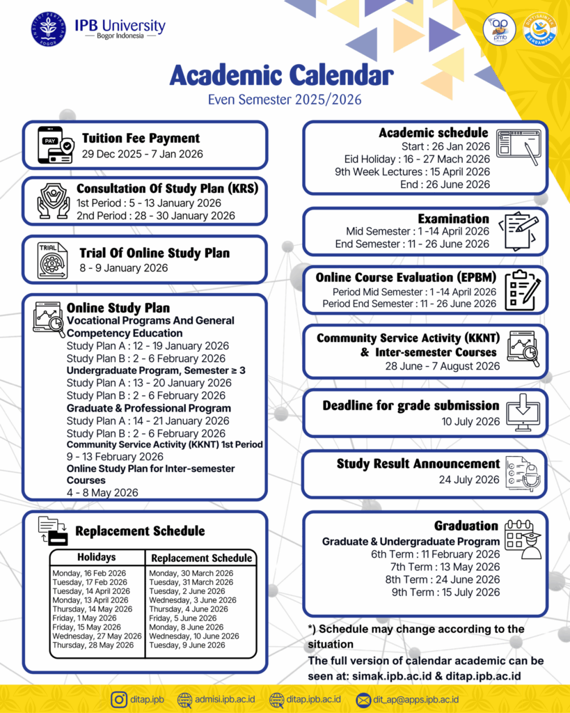 Kalender Akademik Semester Genap Tahun 2025/2026 December 5, 2025 Posted by: Author admin Category: Akademik Comments Off on Kalender Akademik Semester Genap Tahun 2025/2026