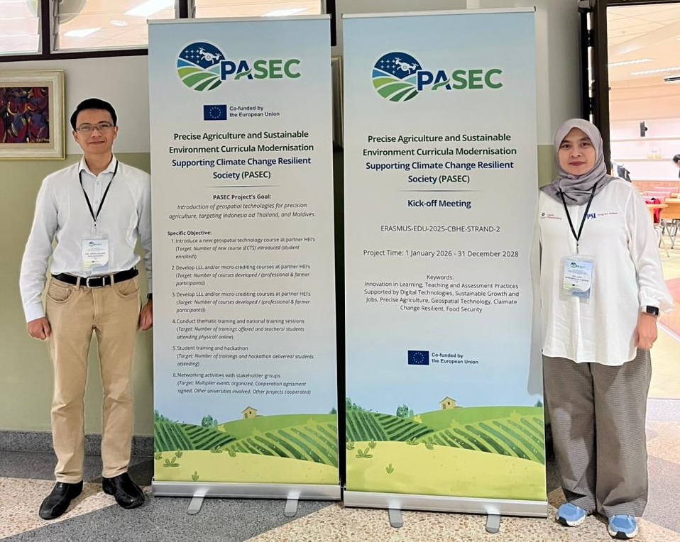 Program Studi Doktor Ilmu Pengelolaan Sumberdaya Alam dan Lingkungan (PSL) menghadiri Kick-Off Meeting of the PASEC Project di Bangkok, Thailand pada 2- 6 Februari 2026. Bertempat di Faculty of Agriculture, Kasetsart University, dua diantara empat perwakilan IPB University untuk proyek PASEC adalah Kaprodi dan Sekprodi Doktor PSL IPB. Dua perwakilan lainnya adalah Prof Widiatmaka (Dosen Departemen Ilmu Tanah dan Sumber Daya Lahan, Fakultas Pertanian) dan Dr Adisti Permatasari Putri Hartoyo (Dosen Departemen Silvikultur, Fakultas Kehutanan dan Lingkungan). Seluruh anggota konsorsium hadir dalam pertemuan ini yaitu koordinator PASEC (University of Zagreb/UNIZG), mitra Indonesia (IPB, USKA, UNTAD), Thailand (KU, PSU), Maldive (MNU), Belgia (KU Leuven) dan mitra Serbia (UNS, Gilab).