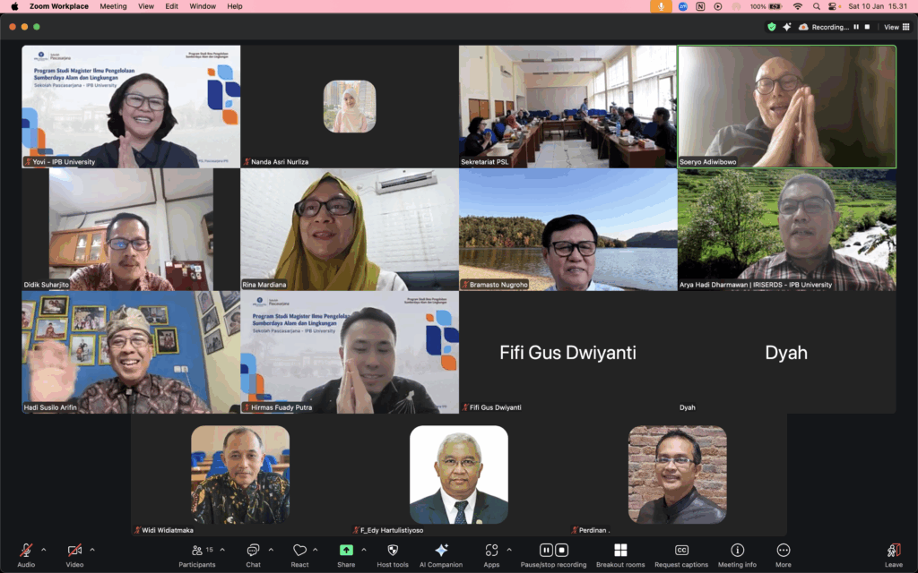 Menutup Semester Ganjil Tahun Akademik (TA) 2025/2026, Program Studi Magister Ilmu Pengelolaan Sumberdaya Alam dan Lingkungan (PSL) IPB University menyelenggarakan Rapat Evaluasi Perkuliahan Semester Ganjil dan Persiapan Semester Genap TA 2025/2026 pada Sabtu, 10 Januari 2026. Kegiatan ini menjadi forum bagi pengelola program studi dan dosen pengajar untuk mengevaluasi pelaksanaan perkuliahan pada semester ganjil sekaligus mempersiapkan penyelenggaraan perkuliahan pada semester genap TA 2025/2026.