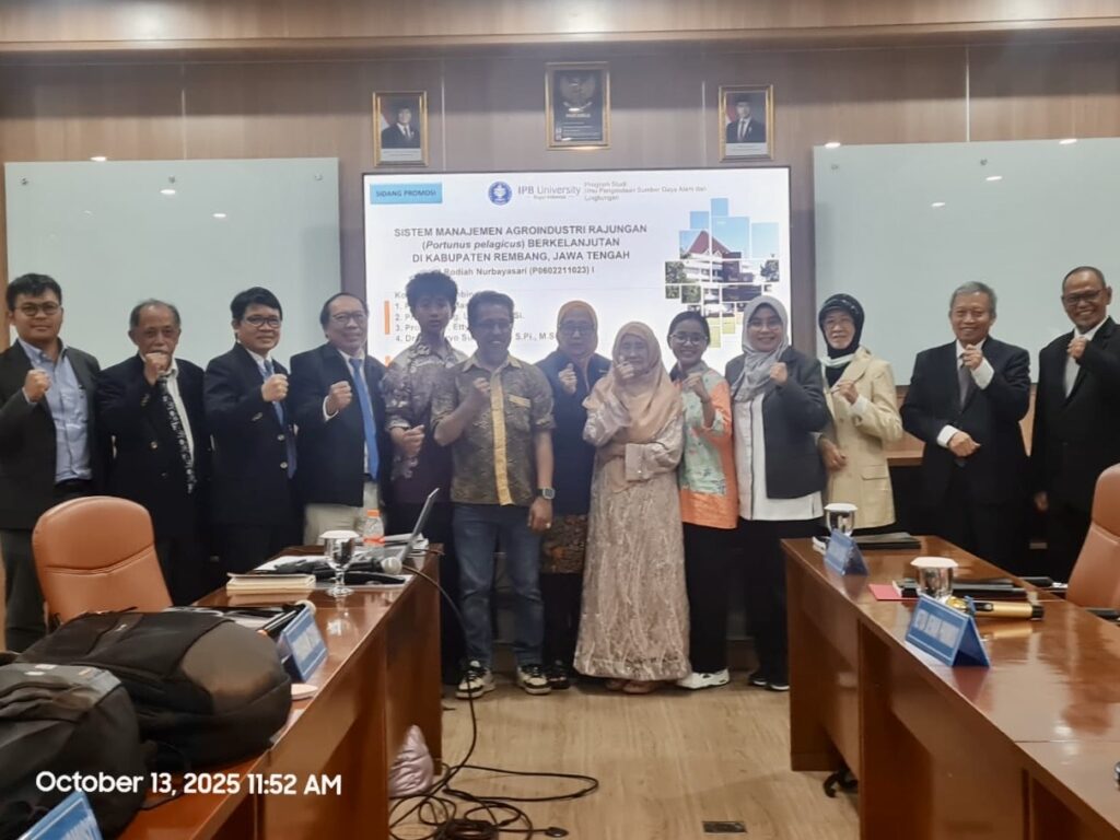 Disertasi bertajuk “Sistem Manajemen Agroindustri Rajungan (Portunus pelagicus) Berkelanjutan di Kabupaten Rembang, Jawa Tengah” merupakan hasil penelitian lebih dari satu tahun. Kabupaten Rembang adalah salah satu sentra utama produksi rajungan nasional. Komoditas rajungan memiliki nilai ekonomi tinggi dan berperan penting dalam ekspor hasil perikanan Indonesia. Namun, peningkatan permintaan global menimbulkan ancaman terhadap keberlanjutan sumber daya. Penurunan stok rajungan dan degradasi ekosistem pesisir menjadi masalah yang perlu segera diatasi melalui sistem pengelolaan terpadu.